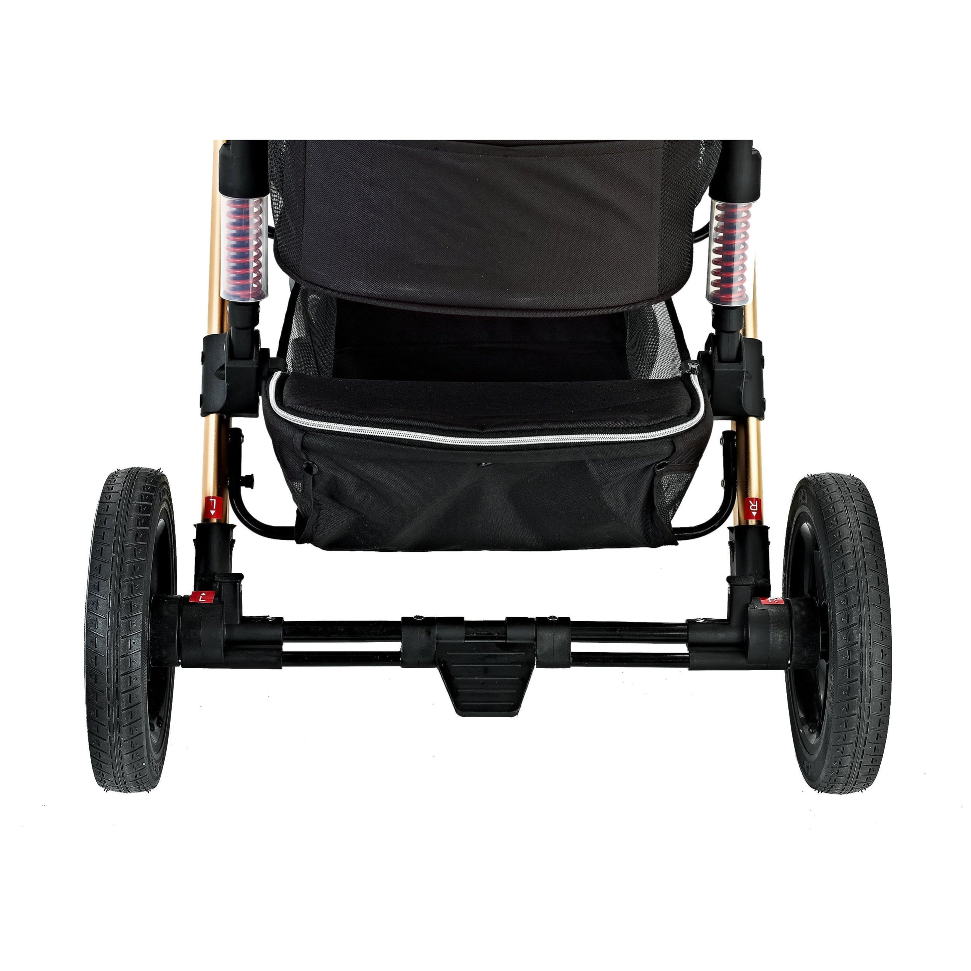 This stroller features a quick-release system which allows for you to detach your carrier* and have it as an individual car seat. The carrier accommodates for a medium-sized pet or multiple smaller-sized ones up to 50 pounds. The Monza (coil springs or suspension) allow your pet to experience a smoother and less bumpy ride and with a press of two buttons, you can collapse the entire stroller to fit in compact places.