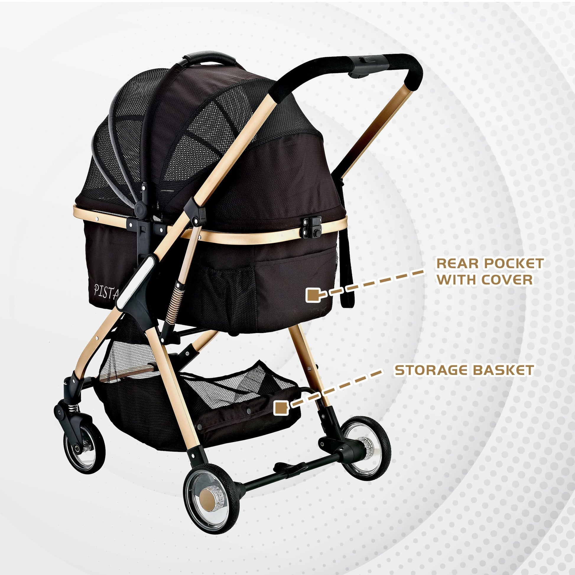 Pista Super-Lightweight Aluminum Frame 3-in-1 Stroller: The Ultimate Mobility Solution for Small/Medium Dogs, Cats, and Pets on the Go!